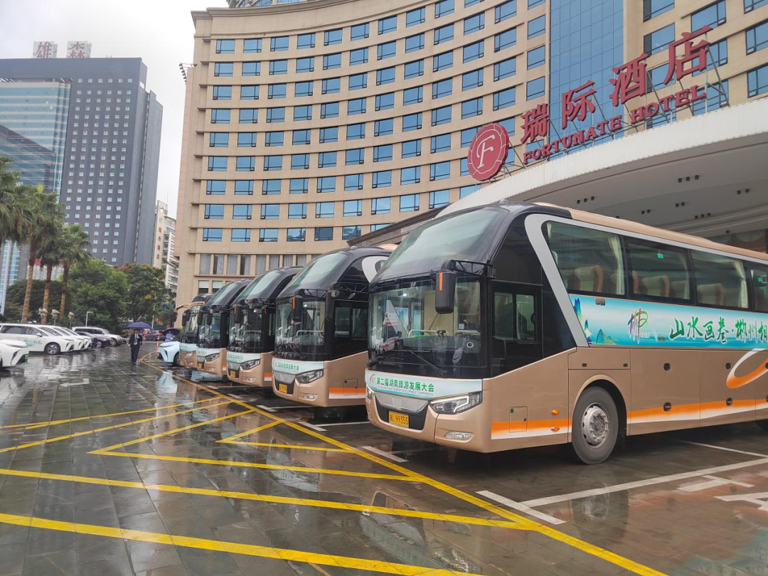 旅发大会第一天,郴汽集团共派出126台各型车辆和126名驾驶员竭诚服务旅发大会。所有的车辆均经过多轮严格安检,确保车辆技术状况良好、随车安全设施设备齐全有效;所有的驾驶员均是从各基层单位挑选出来的素质好、技术高、服务优的精锐人员,并严格通过体检关、毛发采样检测关和政审关。同时郴汽集团在各会务酒店均派驻了调度、安全、机务等保障人员,全力服务旅发大会用车保障工作。