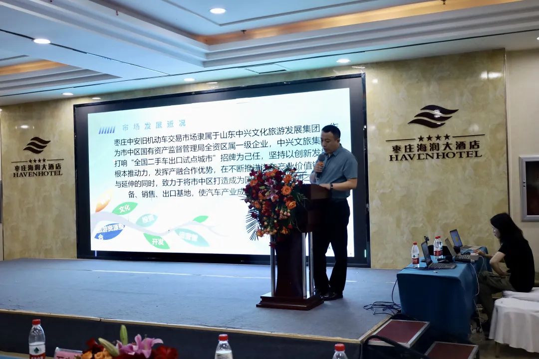 枣庄中安二手车交易市场副总经理刘军介绍了中安二手车市场的出口业务,刘军表示,中安二手车市场的出口业务从最开始的零基础,到一步步摸索,逐步组建起专业的出口团队,并建立了稳定的海外销售渠道,并在霍尔果斯和中亚分别成立了出口分公司,未来将有更大发展空间。