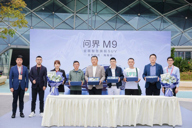 开馆仪式后举行了问界M9海南集中交付仪式,现场为10多位车主送上了仪式感十足的新车交付盛况,观众纷纷表示这种交车仪式很惊喜,充分感受到问界品牌的用心。