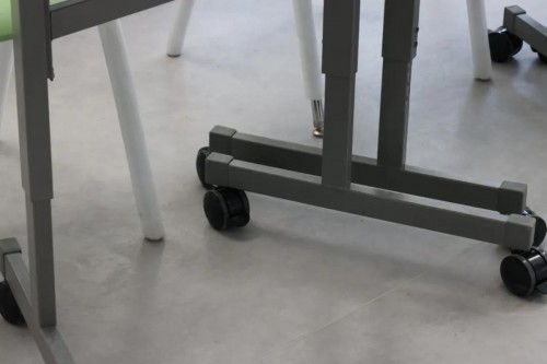 *桌子下有滚轮,学生轻轻一推即可挪动。