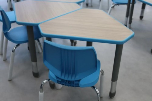 举个例子,为了照顾到每一个孩子,小学、初中部的桌子,都贴心地设计了升降杆,配合成长期学生不同的身高。