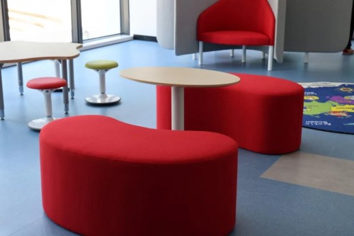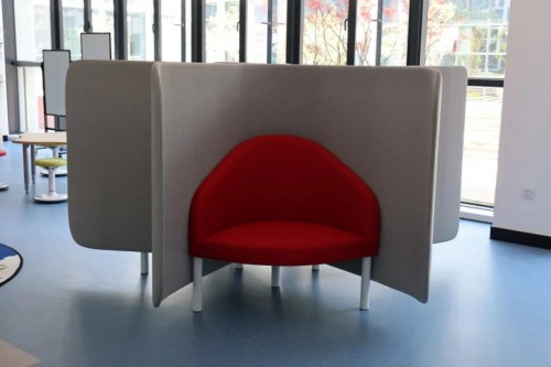 因此,在这些舒适、有趣的家具间,学生与学生、学生与老师并肩而坐,促膝交谈,中间没有任何桌椅或物品阻隔,气氛会变得更加平等、放松。