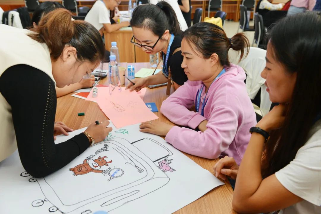 ▲ 参训老师分组绘制“学习旅行箱”