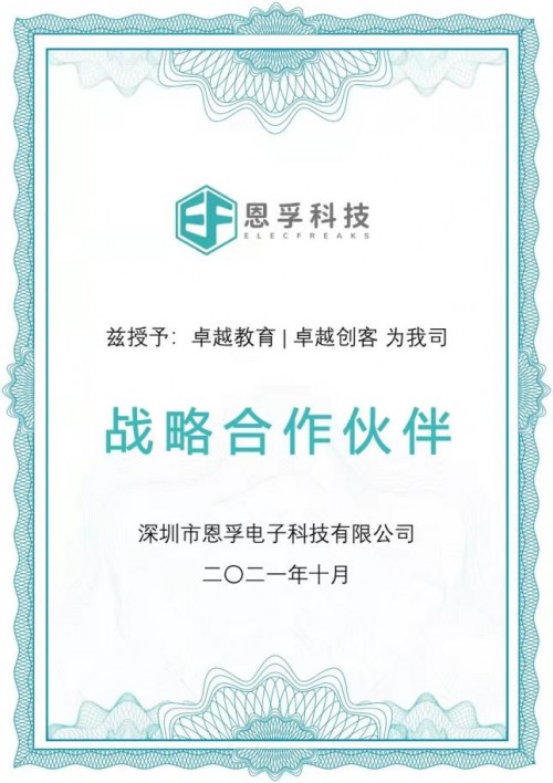 同年十月,卓越教育集团旗下的卓越创客正式与恩孚科技达成战略伙伴合作关系,并于机器人编程课程进行深度合作。通过恩孚科技提供一系列的人工智能编程硬件及合作赛事,如教育部白名单赛事少年硅谷、doyourbit全球挑战赛及深港澳人工智能大赛等,不断丰富卓越创客在机器人常规及竞赛等方面的课程内容,以专业角度完善编程课程体系,与时俱进地不断引入优质教学资源,持续满足学生及家长对编程素质教育的多元化需求。