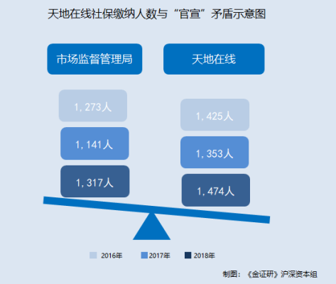 而据招股书,2016-2018年,天地在线在册员工社保缴纳人数分别为1,425人、1,353人、1,474人。即较之“官宣”数据,招股书所披社保缴纳人数分别多出152人、212人、157人。