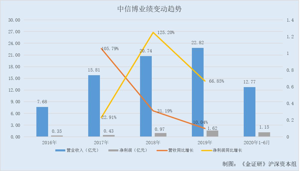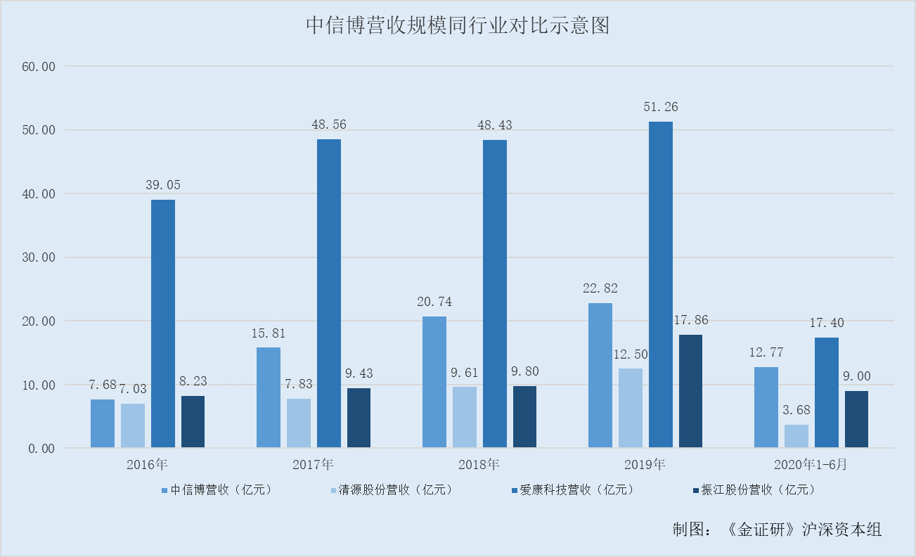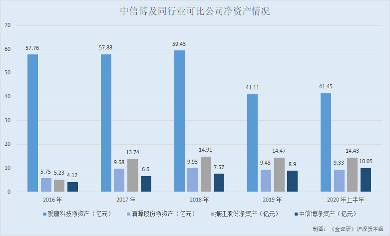 可见,2016-2019年,中信博净资产规模在同行“垫底”。到了2020年1-6月,中信博净资产规模位列第三。