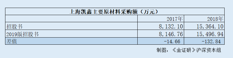 上述问题仅为“冰山一角”,上海凯鑫两版招股书原材料采购金额相差逾百万元。