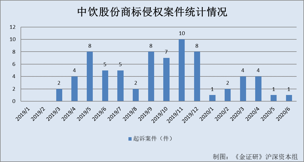 2019-2020年上半年,中饮股份维权的涉诉案件分别达到59件、13件,其中一些月份,中饮股份涉诉案件甚至达到10起。另外,侵权“巴比”品牌的对象多数为随处可见的包子铺、食品店等。因此,无论是从涉诉数量方面,还是侵权对象的分布范围来看,中饮股份的商标频频被侵权而引发品牌风险,未来其将维护其品牌形象?不得而知。