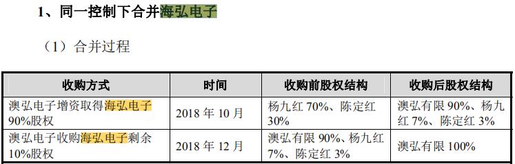 其中涉及到利润,澳弘电子2017-2019年获得的政府补助金额分别为68.64万元、783.91万元、1,126.04万元;2017年净利润为1.03亿元,其中合并的子公司海弘电子2017年末净利润为4,665.58万元,占当年净利润的比例约为45%。或许这正是澳弘电子区别同行的地方,如此高的占比,可持续性或难保证。