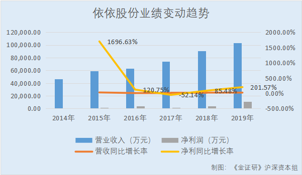 据招股书,2017-2019年,依依股份主营业务收入分别为73,916.9万元、90,190.98万元、102,572.24万元。