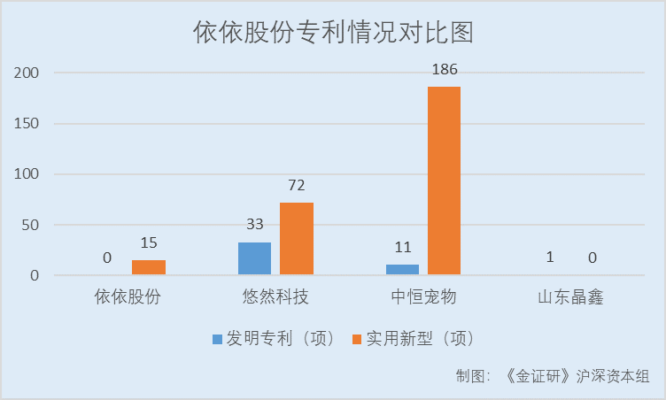 无论是在发明专利还是实用新型专利,依依股份在同行“垫底”;而其发明专利方面,也不及两家主要竞争对手。此外,依依股份在研项目或遭遇可替代性。