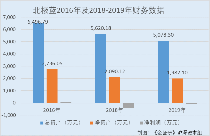 可以看出,2016年及2018-2019年,北极蓝的总资产和净资产都在逐年“缩水”,而2018年起净利润告负,或成为仲景食品的“拖油瓶”。