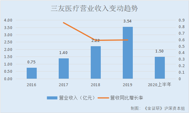 到了2020上半年,三友医疗实现营业收入1.5亿元,较去年同期增长-6.6%,净利润为3,801.32万元,较去年同期增长-23.09%。