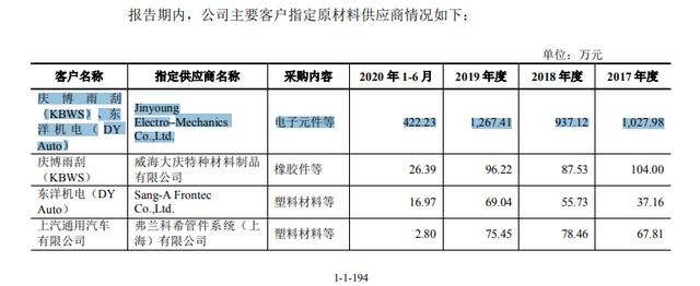 客户指定物料或从客户处采购指定物料为汽车行业惯例。造成了报告期内客户与供应商、客户与竞争对手重叠。以庆博雨刮(KBWS)指定的 Jinyoung Electro–Mechanics Co.,Ltd.为例。恒帅股份主要从Jinyoung采购继电器,继电器焊接在微电机的PCB 线路板上,用于控制微电机运作。