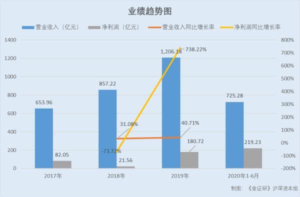 近年来,蚂蚁集团业绩高速增长,其营收在2019年突破千亿规模,而到了2020年上半年,其营收达725.28亿元,净利润高达219.23亿元。