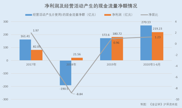 2017-2019年以及2020年1-6月,蚂蚁集团收现比均大于1,而净现比除2018年外,亦均接近于1或大于1。显然,蚂蚁集团具备较强“回款能力”。