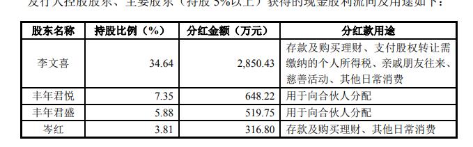 从补充流动资金5,980万来看,只相当于报告期博亚精工的分红。招股说明书披露,报告期内博亚精工现金分红金额分别为1,890万元、1,890万元、2,520万元、2,520万元。总计分红8,820万元,其中实控人一家都分到了4335.2万元之多。问询函也特意提到了请博亚精工补充披露报告期内持续大额现金分红情形下拟将募集资金用于补充流动资金的原因及合理性。博亚精工答复是新三板对未分配利润的股东分红回报。