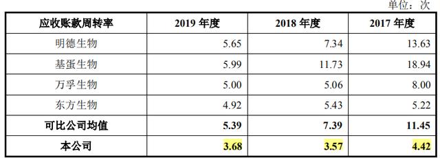 然而与国内同行比较来看,权衡财经iqhcj注意到2017年末、2018年末及2019年末,奥泰生物的应收账款余额分别为3,137.39万元、7,191.97万元和5,917.23万元,应收账款净额占各期末流动资产的比例分别为26.65%、39.54%及22.22%;报告期内,其应收账款周转率与国内同行业可比上市公司相比,处于相对较低的水平。奥泰生物的ODM模式带来的难处充分体现,客户多为境外ODM厂商,外汇结算有所延后,应收账款余额较大。