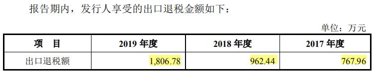 2017年-2019年奥泰生物享受高新技术企业税收优惠金额分别为250.71万元、430.11万元、634.85万元;占同期利润总额的比例分别为6.63%、6.88%和 7.22%;报告期内收到的政府补助分别为110.34万元、50.20万元及765.28万元。同时奥泰生物主要产品以出口销售为主,出口产品税收实行"免、抵、退"政策,2017-2019年享受的出口退税金额分别为767.96万元、962.44万元、1806.78万元。2017-2019年奥泰生物获得的税收优惠、政府补助以及出口退税合计分别为1129.01万元、1442.75万元、3206.91万元,2019年占净利润的比例超40%,依赖度强。
