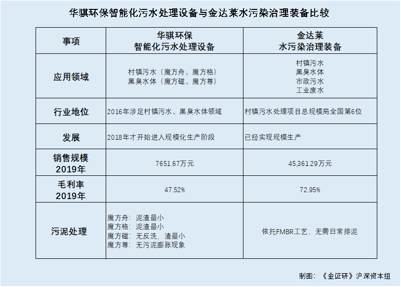 根据《金证研》沪深资本组对比分析,金达莱的水污染治理装备业务成熟,在村镇污水处理领域,位于行业第六名,而华骐环保才刚起步,魔方系列产品从2018年才开始走进市场。“狭路”相逢,对华骐环保而言,金达莱不得不说是一位“劲敌”。
