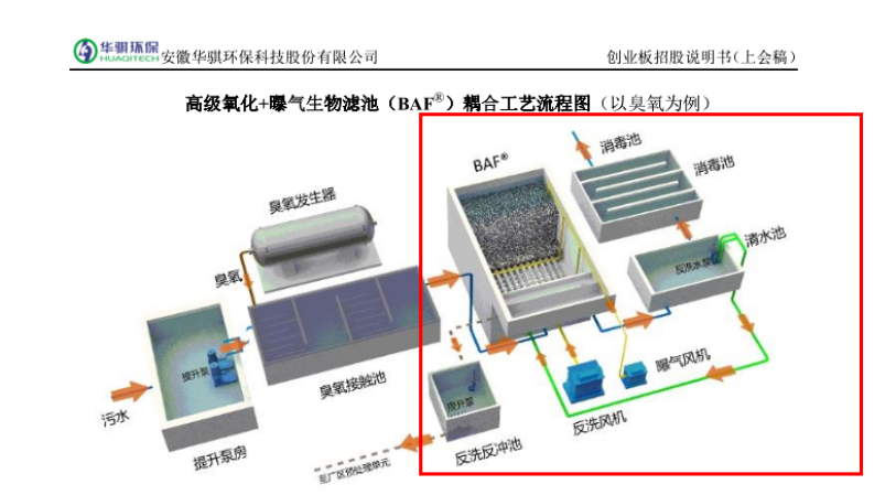 从技术特点看,高级氧化+曝气生物滤池(BAF)耦合工艺是华骐环保的核心技术之一,该工艺是通过臭氧、Fenton、铁碳等高级氧化技术增加废水的可生化性,然后通过生物滤池组合工艺深度处理。