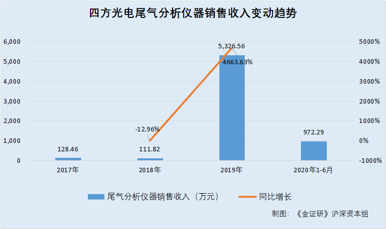 受新政策影响,2019年,四方光电的尾气分析仪器的销售收入增长超46倍。