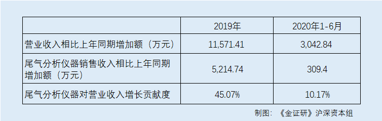从营收增长贡献度来看,2019年四方光电的营业收入增加额为1.16亿元,尾气分析仪器的销售收入增加额为0.52亿元。当年,四方光电尾气分析仪器的销售收入增加额占营业收入增加额的比重为45.07%,是四方光电营业收入增长的主要驱动因素之一。