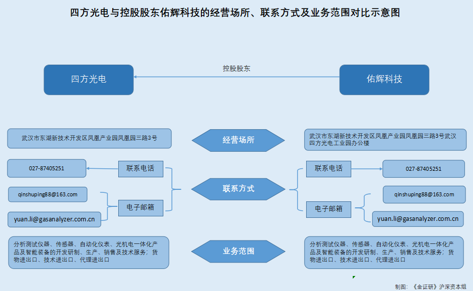 而官方公开信息显示,佑辉科技或非股权投资公司,其或曾经营与四方光电“相同”的业务。