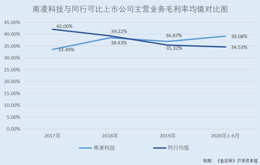 2017-2019年及2020年1-6月,南凌科技的主营业务综合毛利率为33.49%、38.43%、36.87%、39.08%。
