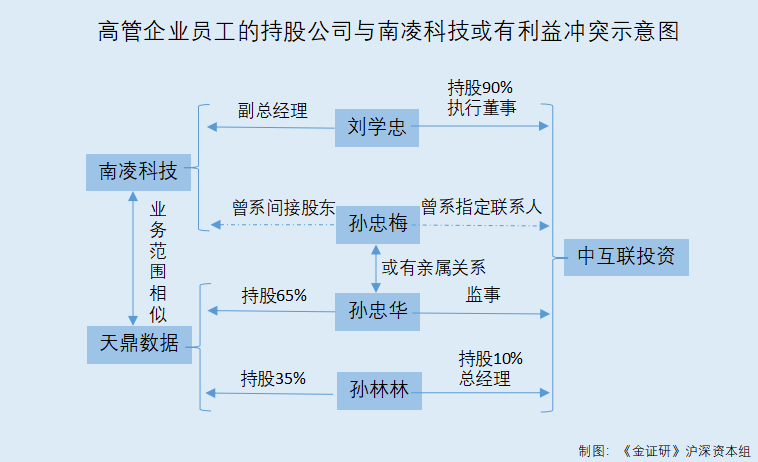 根据《金证研》沪深资本组分析,刘学忠是南凌科技的副总经理,而刘学忠名下企业的高管,持股一家与南凌科技业务范围重叠的公司,或存利益冲突。