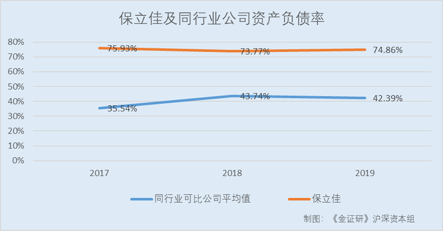 据招股书,2017-2019年及2020年上半年,保立佳的资产负债率分别为75.93%、73.77%、74.86%、71.29%。