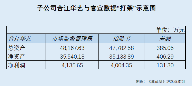 据市场监督管理局数据,2019年,郎酒股份子公司合江华艺的总资产、净资产、净利润分别为48,167.63万元、35,540.18万元、4,135.65万元;即招股书披露合江华艺的总资产、净资产、净利润,较之“官宣”数据分别少了385.05万元、406.29万元、131.3万元。