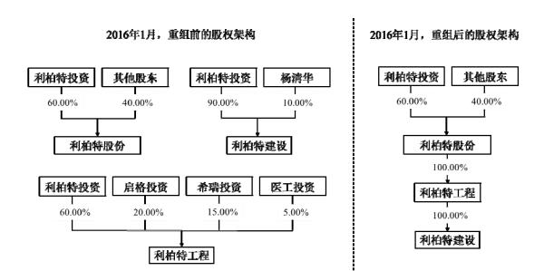 2016年1月,为彻底解决同业竞争,规范关联交易,利柏特股份通过同一控制下企业合并,收购了利柏特工程及利柏特建设100.00%股权,两者转让对价都为5,000万元。由此利柏特股份业务从单一的工业模块设计和制造延伸拓展到了工程总承包、工程设计、工程施工、工程维保等各类工程服务