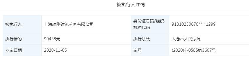 上海靖刚建筑劳务有限公司作为利伯特股份的前五大供应商之一,2017年-2020年1-6月贡献了采购金额分别为3,191万元、3,525万元、2,186万元和1,863万元。不过其因合同纠纷沦为被执行人,自然也少不了行政处罚。