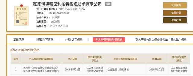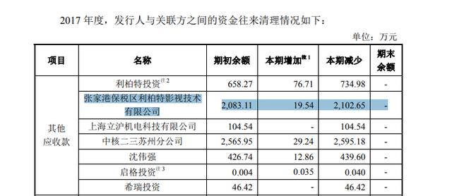 招股书在披露与关联方的资金往来情况时,显示在2017年度,利柏特股份与张家港保税区利柏特影视技术有限公司的往来款有2,102万元之多, 而利柏特影视在2016年7月1日即进入经营异常名录。利柏特股份于12月8日已更新招股书,后续的上市之路如何,大家静待其发展。