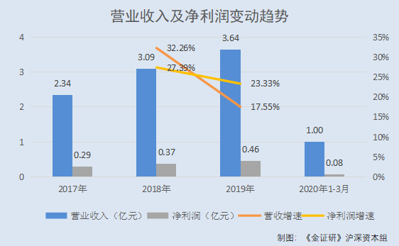 据新荷花签署日为2020年9月10日的招股说明书(以下简称“招股书”),2017-2019年及2020年1-3月,新荷花的营业收入分别为2.34亿元、3.09亿元、3.64亿元、1亿元,2018-2019年分别同比增长32.26%、17.55%。