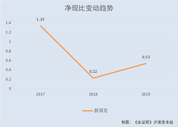 据招股书,2017-2019年及2020年1-3月,新荷花经营活动产生的现金流量净额分别为3,879.09万元、830.22万元、2,439.73万元、517.6万元。即同期,新荷花的净现比分别为1.33、0.22、0.53。