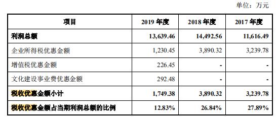 2017年-2019年美柚股份享有的税收优惠金额分别为3239.78万元、3890.32万元和1749.38万元,同期获得的政府补助金额分别为1310.24万元、1342.47万元和1614.99万元,二者合计金额占当期公司利润总额的比例分别为39.2%、36.1%和24.7%。