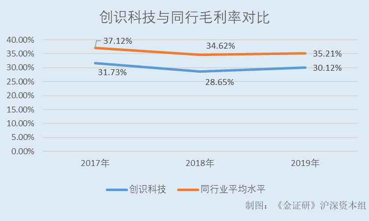 据招股书,2017-2019年,创识科技的毛利率分别为31.73%、28.65%、30.12%。