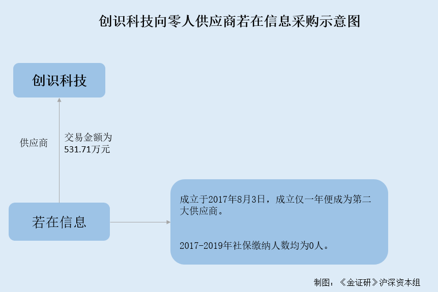 据招股书,2018年,上海若在信息技术有限公司(以下简称“若在信息”)为创识科技第二大供应商,创识科技向其采购POS终端配件,采购金额为531.71万元。