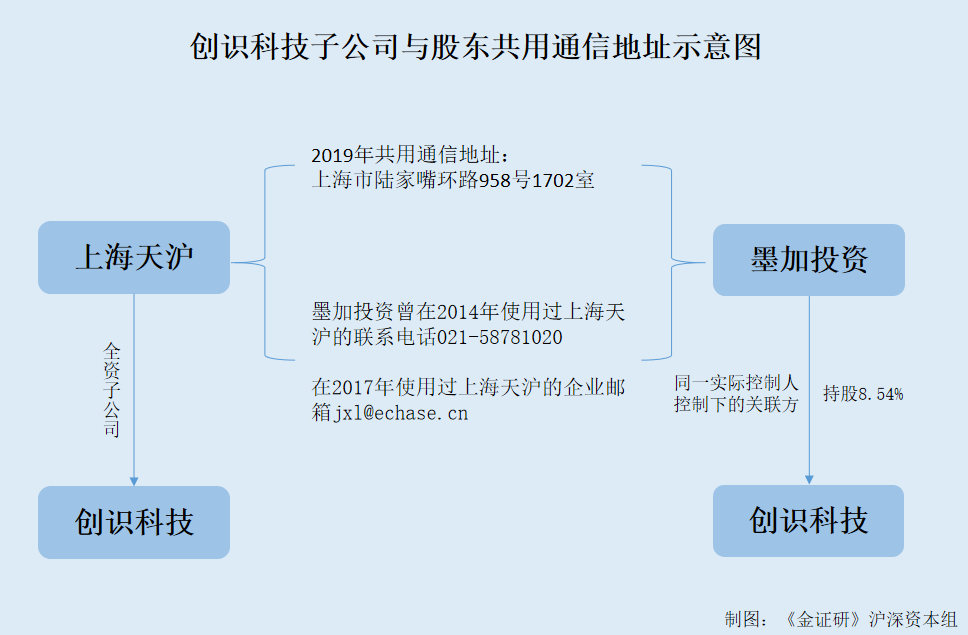 作为创识科技的股东及其实控人控制的公司,墨加投资曾使用过创识科技子公司上海天沪2019年使用的电子邮箱及联系电话。此外,墨加投资2019年年报显示的通信地址与上海天沪的通信地址“别无二致”,创识科技或与墨加投资经营混淆,其如何保证独立性?犹未可知。