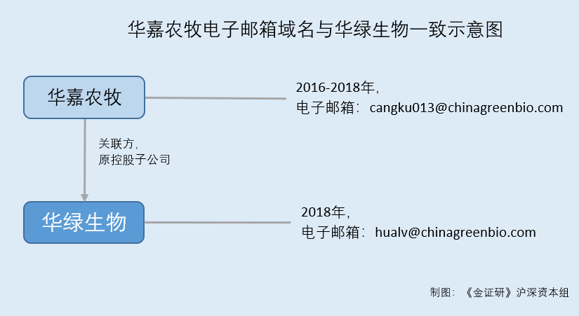 这意味着,2017年1月22日将其转让出去后,华嘉农牧不再系华绿生物的子公司,2018年,华嘉农牧的企业邮箱后缀与华绿生物的邮箱后缀一致,其中两者是否存在经营混淆的情形?不得而知。