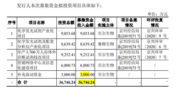 从其官网上看,贝尔生物与国内2,000多家医院、500多家经营公司进行直接合作,根据临检中心数据统计,其TORCH系列优生优育检测产品在全国主要医疗机构覆盖率超过10%。此次拟发行新股2,500万股,占发行后总股本比例为25%,拟冲刺创业板由国金证券保荐。拟募集资金3.67亿,其中补充流动资金3,000万元。