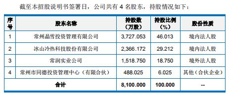 公司股东晶雪投资按穿透计算的股东人数为3名自然人股东;冰山冷热(SZ.000530)为深圳交易所主板上市公众公司计为1名股东;同德投资为公司员工持股平台计为1名股东,常润实业按穿透计算的股东人数为1名自然人股东。