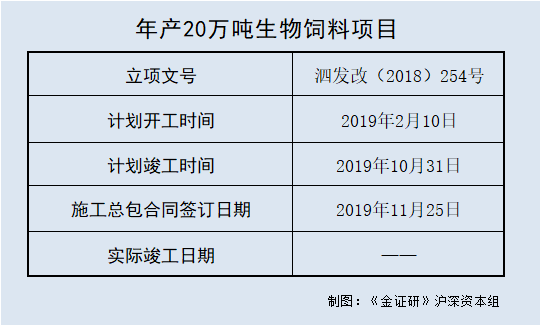 据住建部公开数据,华骏生物年产20万吨生物饲料项目,其立项文号为泗发改(2018)254号,该项目计划开工时间是2019年2月10日,计划竣工时间是2019年10月31日。