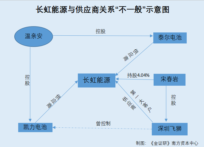 可见,长虹能源关联交易占比高企背后,其关联方深圳飞狮既系长虹能源的前五大客户之一,还身兼供应商。而实际上,除了已披露的关联交易,其供应商凯力电池曾受关联方深圳飞狮控制;另一供应商泰尔电池与凯力电池或为受同一控制企业。通过穿透上述股权关系,长虹能源供应商背后或现“熟人关系网”,个中对其交易的影响几何?不得而知。