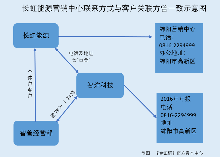 这是否意味着,由智善经营部实控人控制的智煊科技,其2016年的电话曾与长虹能源绵阳地区营销中心的电话一致。