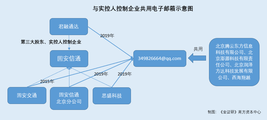 除此之外,固安信通子公司、分公司还与君融通达邮箱“共享”,并与无关联公司共用邮箱。