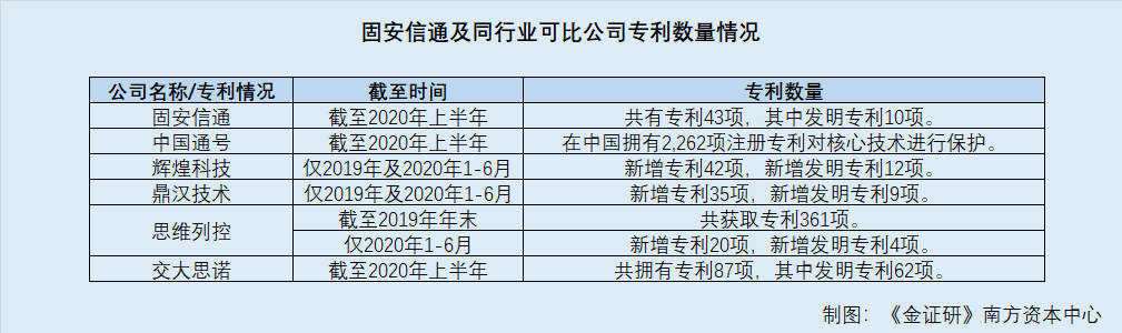 也就是说,根据同行业可比公司持有的专利数量及新增数量,截至2020年上半年,固安信通专利数量或“落后”于同行平均水平,其创新能力如何?
