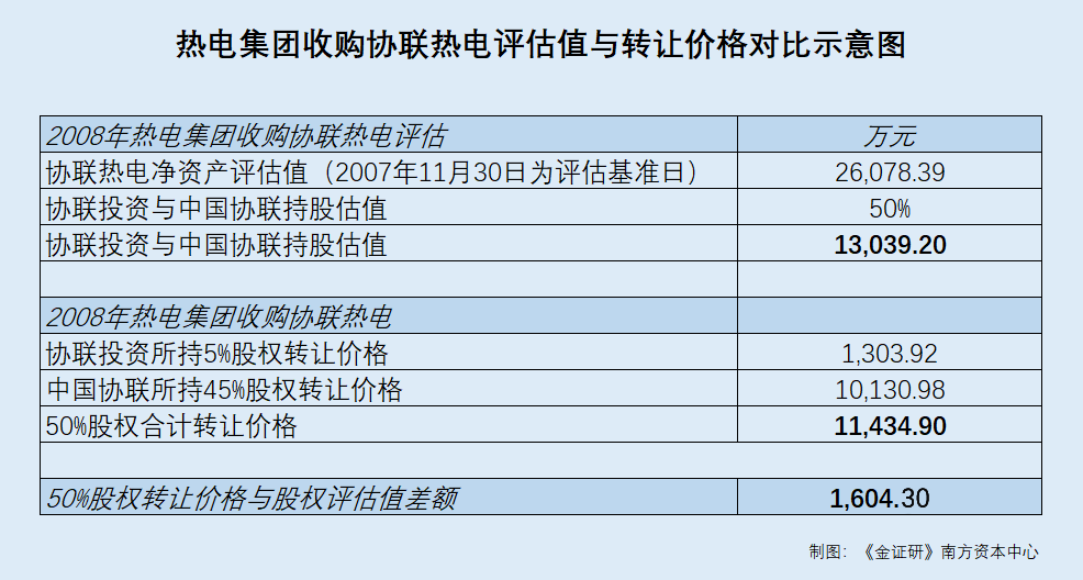 而《金证研》沪深南方资本中心按持股比例计算估值,截至2007年11月30日,协联热电净资产评估值为26,078.39万元,则协联热电50%股权对应的净资产评估值应为1,3039.2万元。